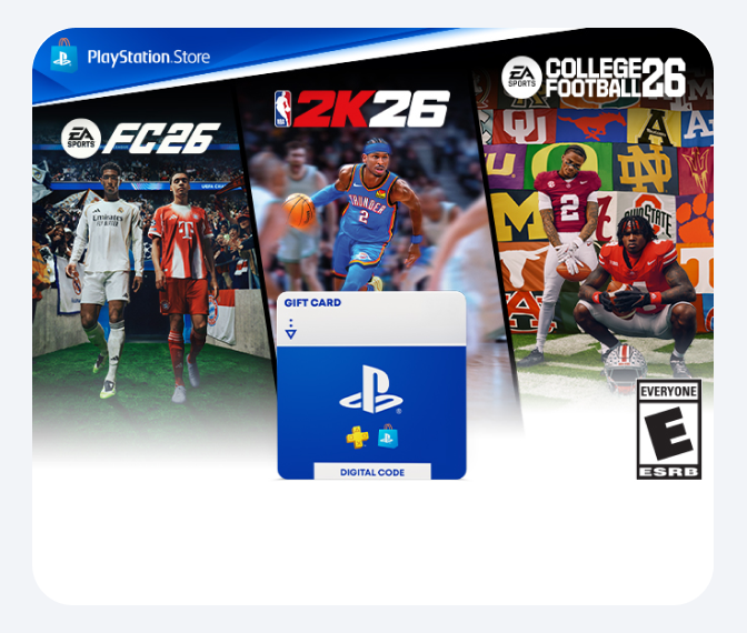 Give the gift of PlayStation®, with a pre-paid card to spend on games, add-ons, subscription and more.